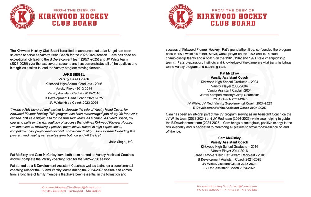 New Varsity Head Coach Announcement